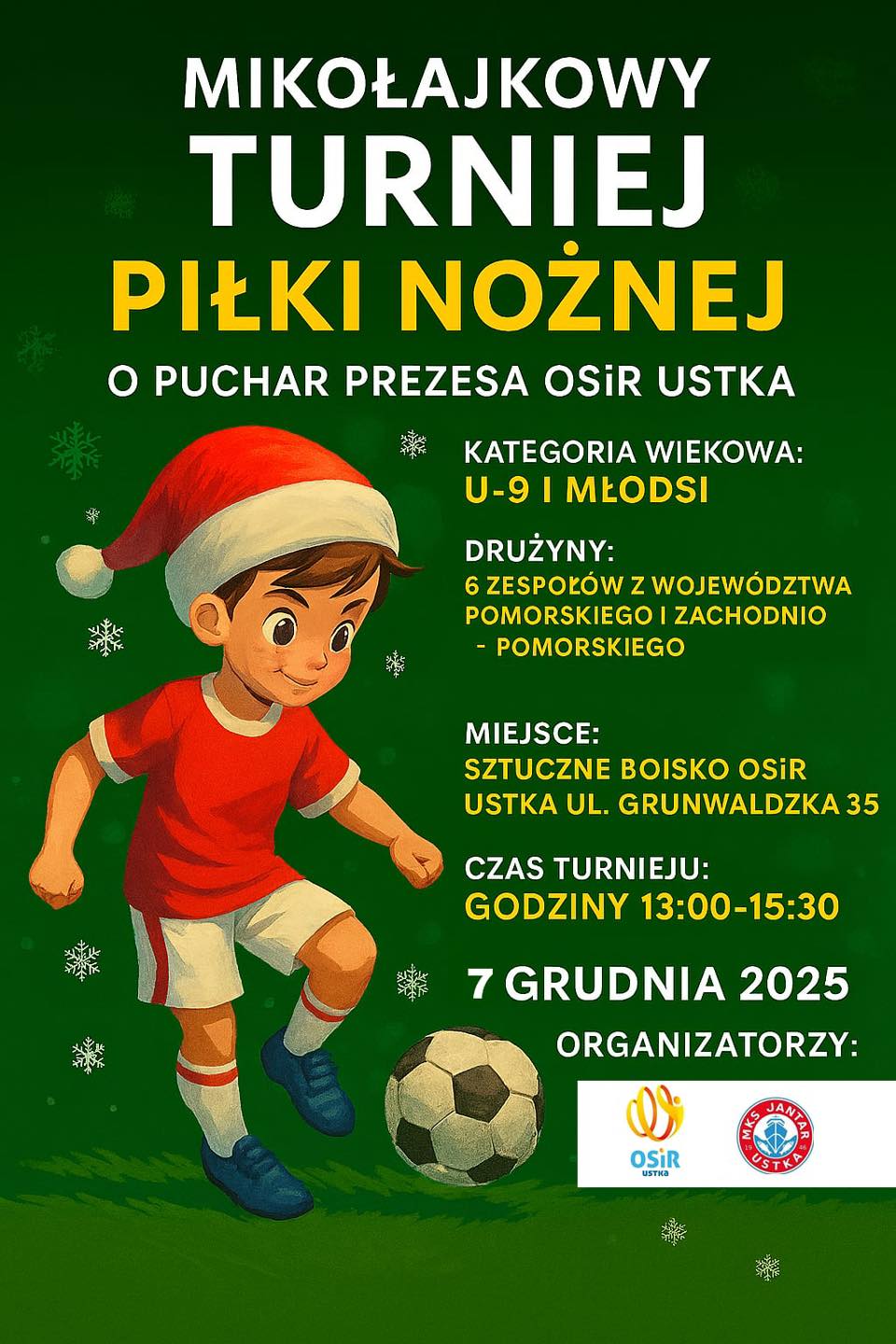 Zapraszamy na Mikołajkowy Turniej Piłki Nożnej o Puchar Prezesa OSiR Ustka.