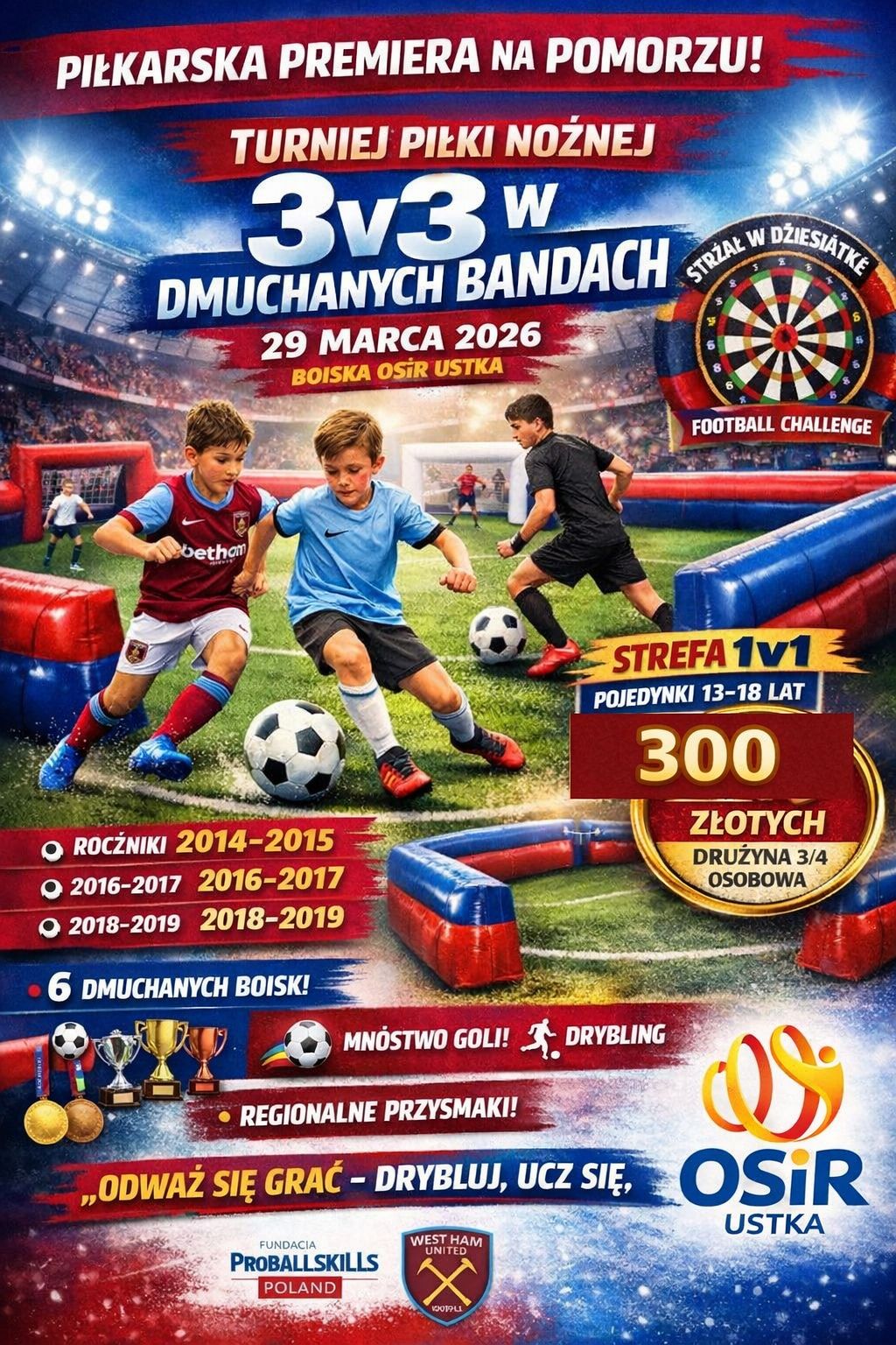 Zapraszamy na Turniej piłki Nożnej 3x3 w dmuchanych bandach, który odbędzie się 29 marca 2026 r.