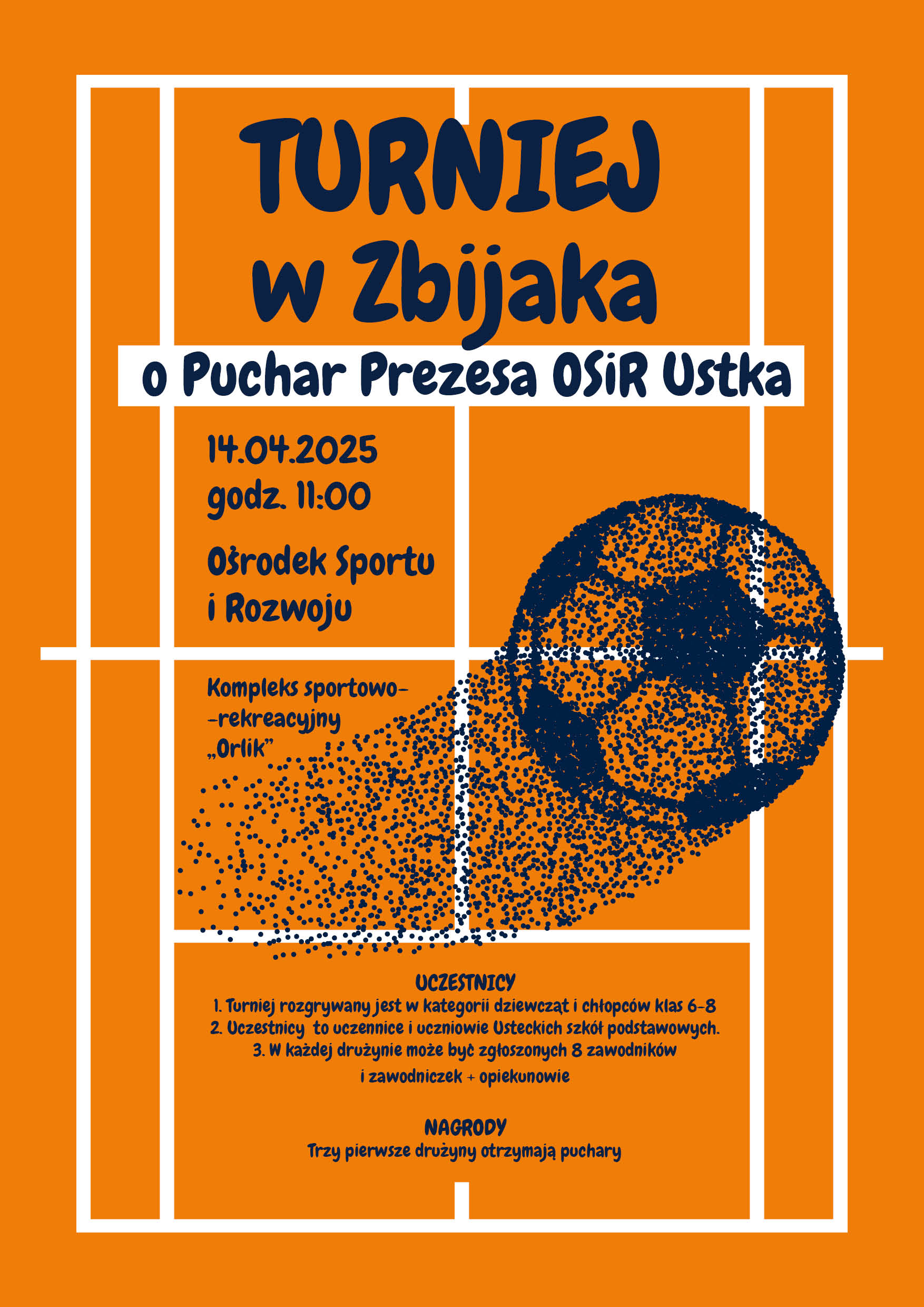 14 kwietnia o godzinie 11:00 na kompleksie sportowo-rekreacyjnym Orlik w Ustce odbędzie się #Turniej w #Zbijaka dla szkół podstawowych. Młodzi zawodnicy zmierzą się w rywalizacji o Puchar Prezesa OSIR Ustka.