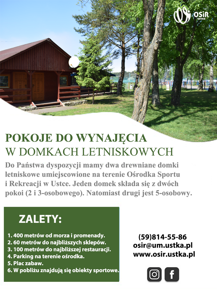 Do Państwa dyspozycji mamy dwa drewniane domki ulokowane na terenie Ośrodka Sportu i Rekreacji w Ustce mieszczące się przy ul. Grunwaldzkiej 35. Jeden domek składa się z dwóch pokoi - 2 i 3-osobowego. Natomiast drugi jest 5-osobowy.